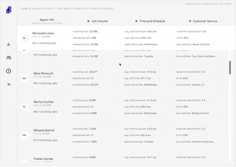 People often request tables because they want to see a lot of information at a granular level. And they normally want this so as they identify patterns, they can dig into some of the underlying information. But pinpointing outliers or particular use cases can be difficult when looking across an entire table. Giving them the ability to freeze a row while being able to move through the table can help then hone in on particular focus areas.
